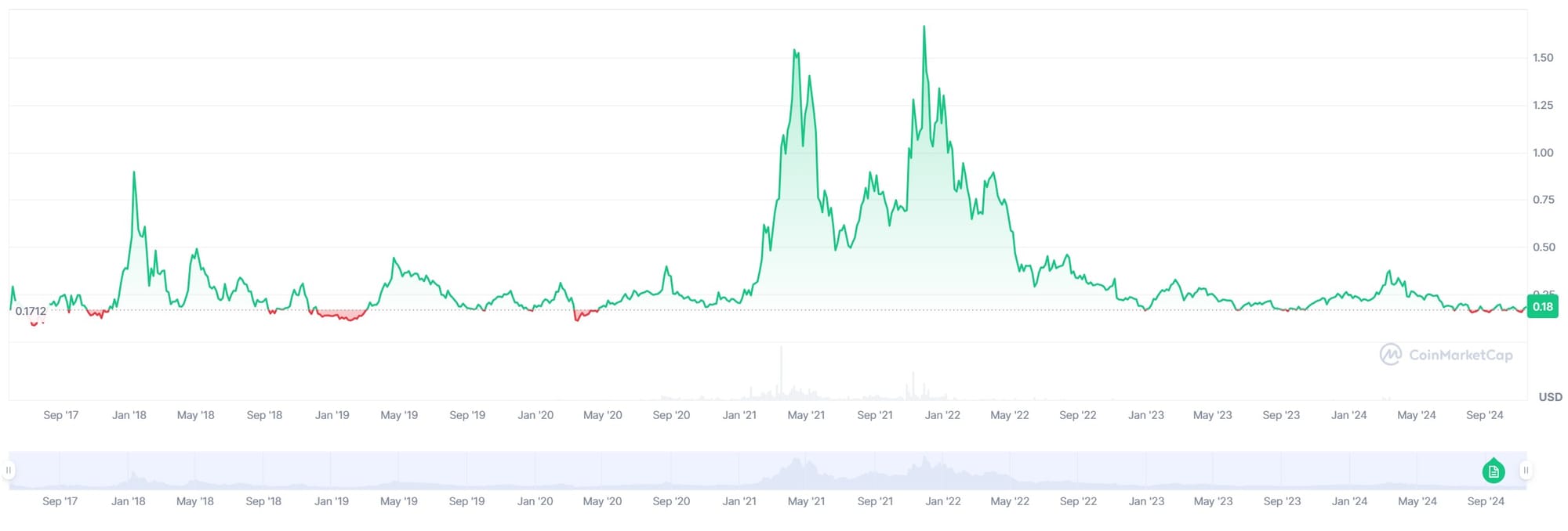 - W szczytowym momencie 2021 roku BAT osiągnął wartość $1.77