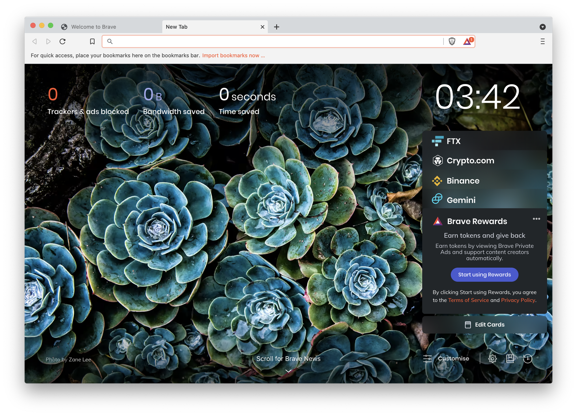 - Czerwiec 2021: Brave wprowadza widget FTX na stronie startowej (wersja 1.26)