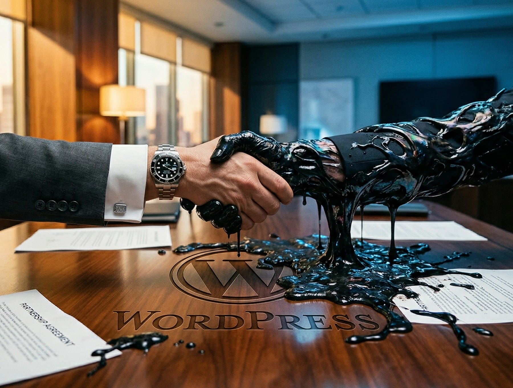 Supply chain attack na WordPress w czystej postaci. Ktoś kupił 30+ wtyczek Essential Plugin na Flippie za sześć cyfr — Flippa nawet opublikowała case study o transakcji jako sukces. Pierwszy commit nowego właściciela to backdoor ukryty za fałszywym changelogiem o kompatybilności z WP 6.8.2.