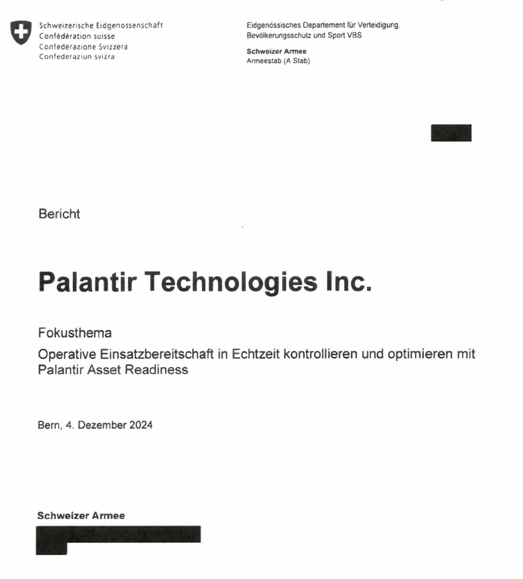 Raport powstał w grudniu 2024. W tym samym miesiącu, po drugiej stronie Alp, Polska podpisywała pierwsze memorandum z Palantirem.